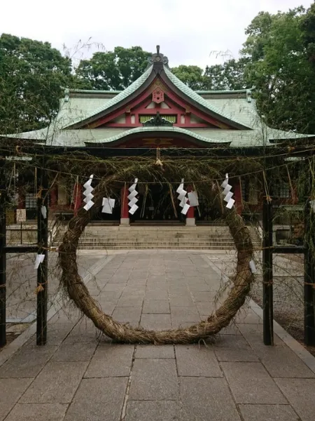 正面でお辞儀、左足で茅の輪をまたぎ、参拝へ